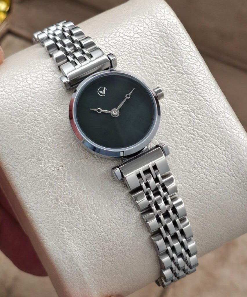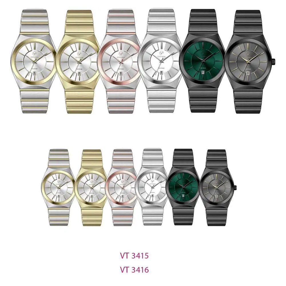 رنگ بدنه و بند ساعت مچی ویتوریا: رنگ موجود در بدنه و بند استیل ساعتهای ویتوریا از نوع رنگ ثابت است و به مرور زمان دچار خراش نمیشود.