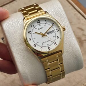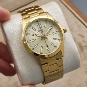 ساعت مردانه کاسیو مدل **CASIO MTP-V300G-1A** با بدنه و بند استیل ضدزنگ، ترکیبی از دوام و استحکام را ارائه می‌دهد.