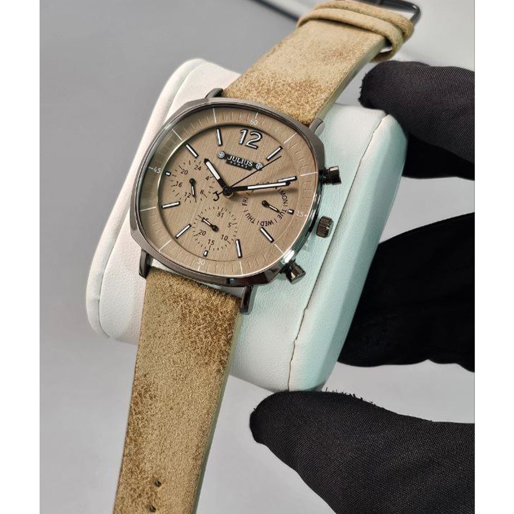 ساعت JAH-098C با بند چرمی جیر، مناسب برای استفاده های روزمره و فشن آقایان با گارانتی رسمی معتبر