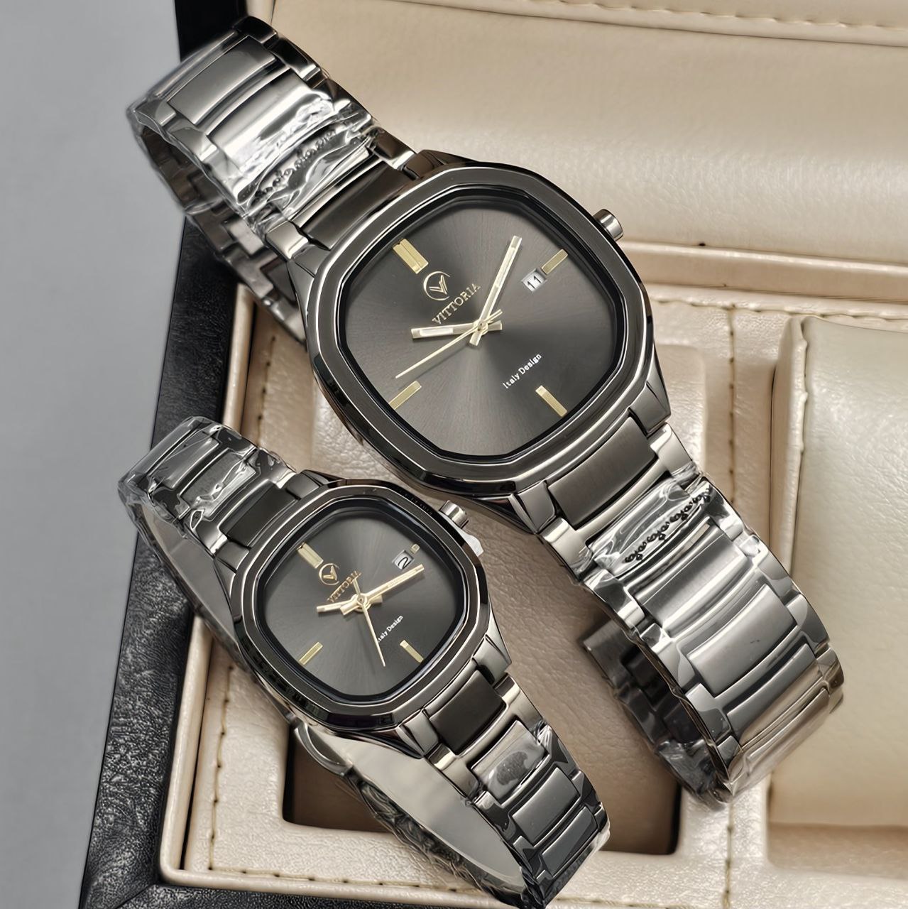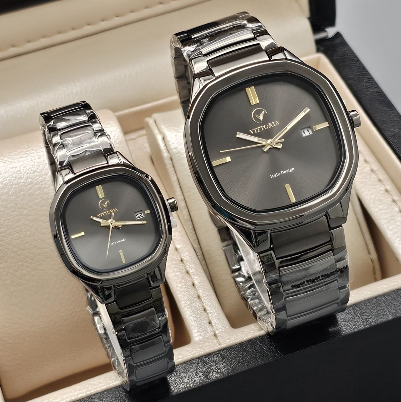 ساعت ست از برند ویتوریا vittoria با کد vt3428 / vt3429 با قاب مربعی شکل و ظرافتی خاص همراه با پک اصلی و ضمانت معتبر شرکتی .