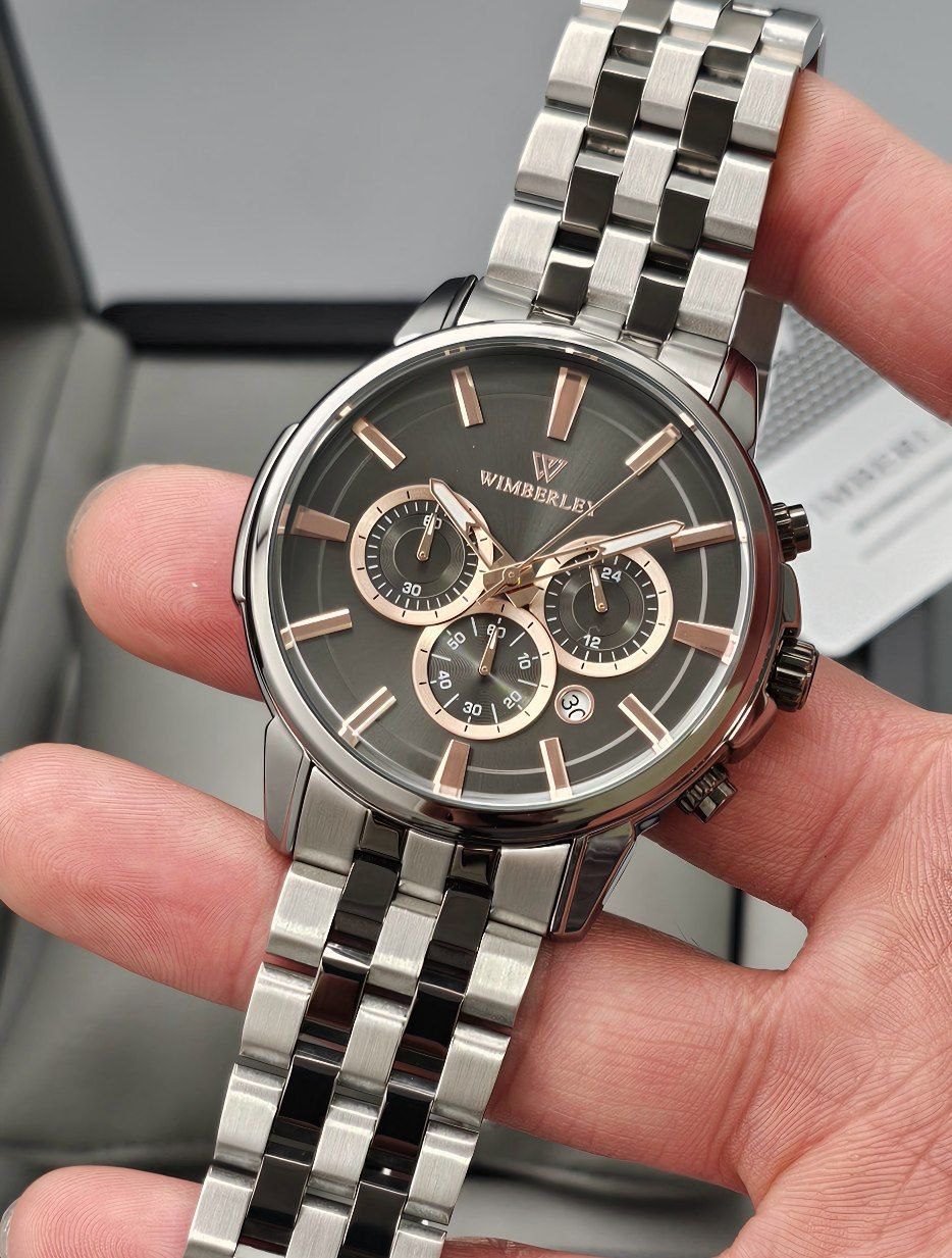 ساعت مردانه ویمبرلی مدل WIMBERLEY WB-SS210G-M از متریال باکیفیت ساخته شده است. بدنه و بند این ساعت از استیل ضدزنگ طراحی شده که مقاومت بالایی در برابر ضربه و خوردگی دارد. استفاده از این متریال علاوه بر دوام بالا، ظاهری شیک و ماندگار به ساعت می‌بخشد و آن را برای استفاده روزمره و رسمی ایده‌آل می‌کند.