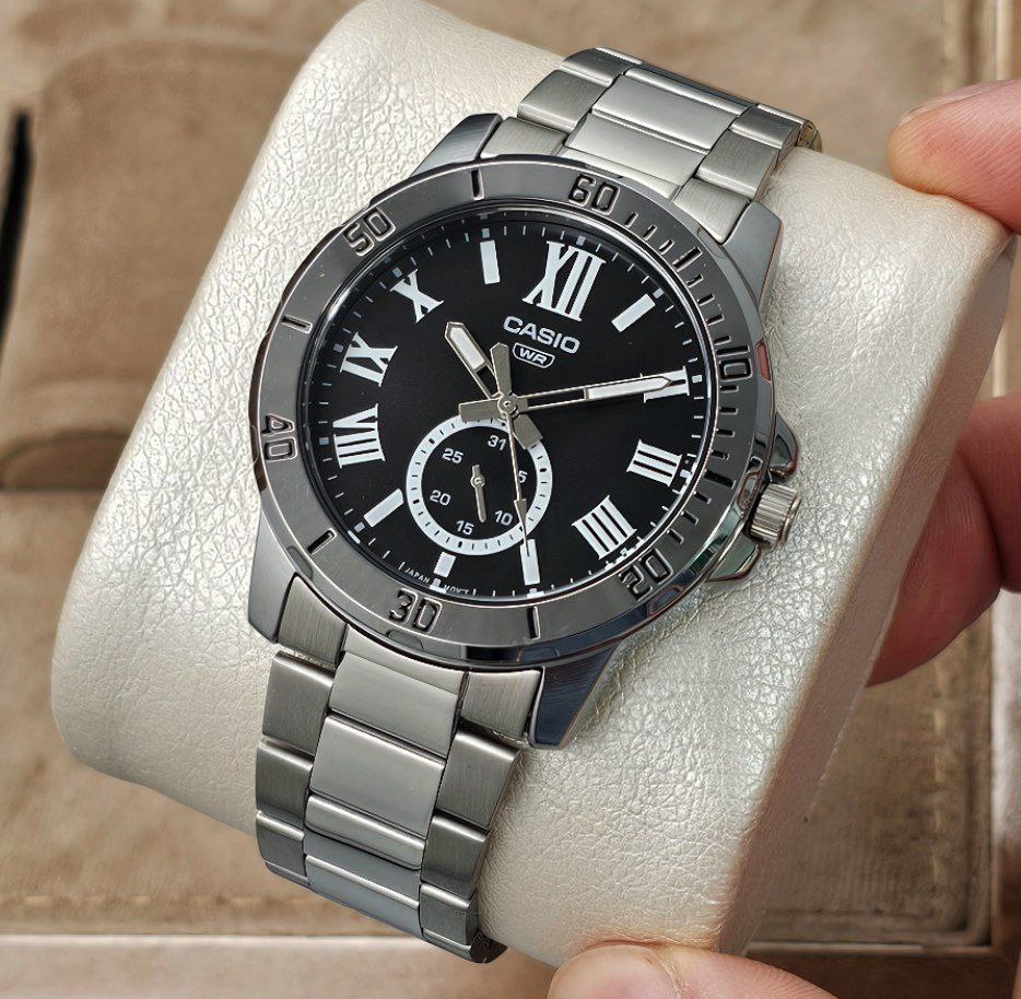 ساعت مردانه کاسیو مدل CASIO MTP-VD200D-1B با بدنه و بند استیل ضد زنگ ساخته شده است. این ساعت دارای شیشه معدنی مقاوم بوده و از متریال باکیفیت برای دوام و استحکام بیشتر استفاده شده است.